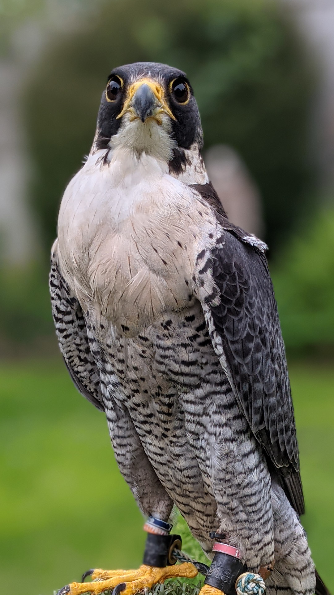Jester is a male Peregrine Falcon, known in falconry as a tiercel, from the Latin for “one third,” reflecting the fact that males are around a third smaller than females. Compact, sharp, and highly driven, Jester is a specialist in managing smaller pest bird species across open outdoor environments such as farmland, airports, and coastal areas.